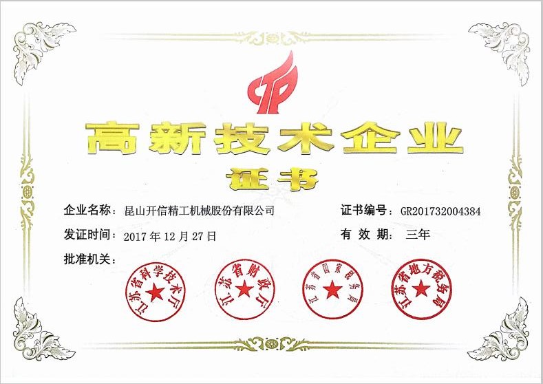 開信精工通過高新技術(shù)企業(yè)復(fù)審!